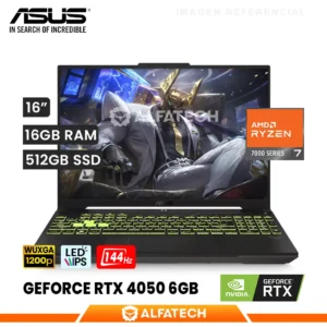 LAPTOP ASUS TUF GAMING A16 FA607NUG-RL216 AMD RYZEN 7 7445HS 16GB RAM 512GB SSD RTX 4050 6GB 16 WUXGA IPS 144HZ (FA607NUG-RL216)