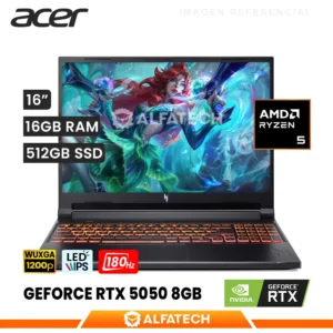 LAPTOP ACER NITRO V 16 ANV16-42-R96P AMD RYZEN 7 260 16GB RAM 512GB SSD RTX 5050 8GB 16 WUXGA IPS 180HZ (NH.U2NAA.003)