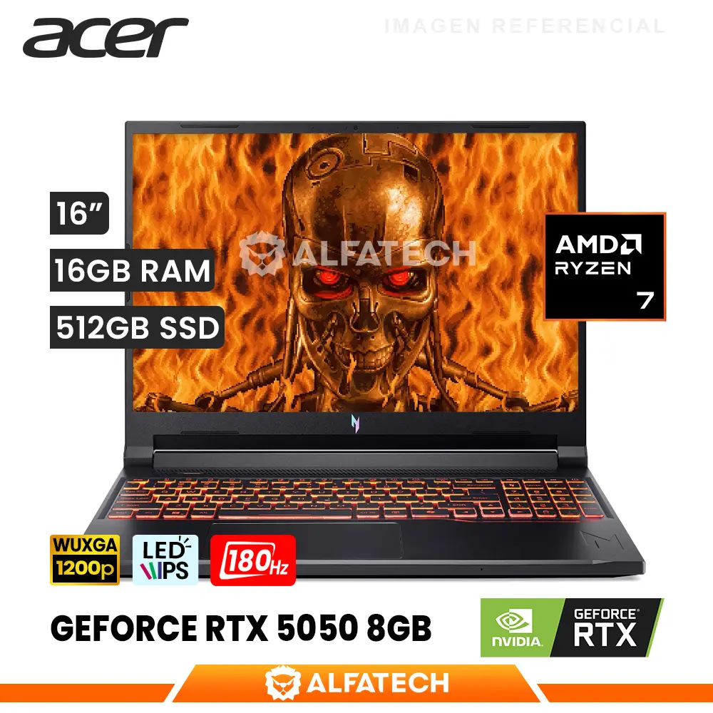 LAPTOP ACER NITRO V 16 ANV16-42-R96P AMD RYZEN 7 260 16GB RAM 512GB SSD RTX 5050 8GB 16 WUXGA IPS 180HZ (NH.U2NAA.003)