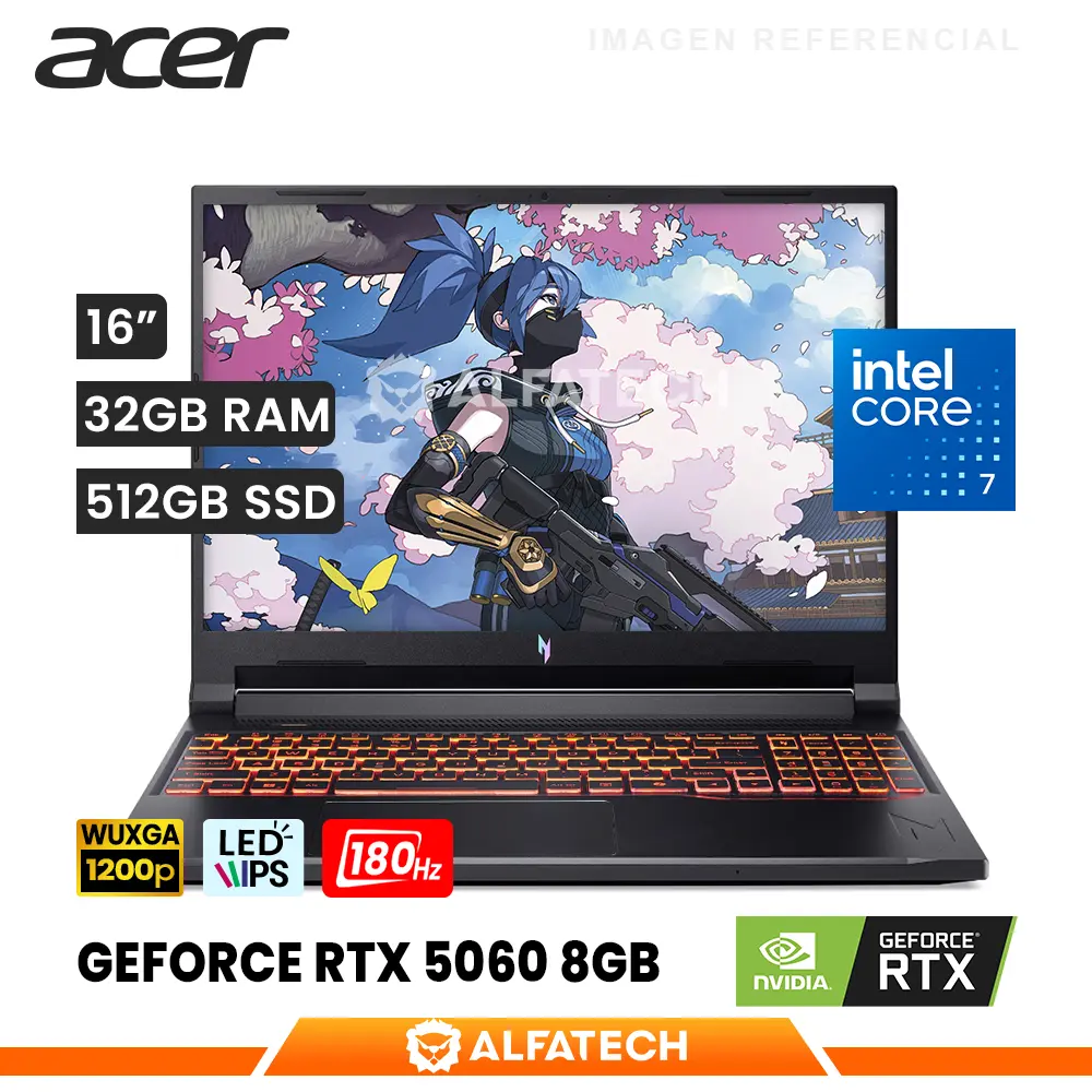 LAPTOP ACER NITRO V ANV16-72-7809 INTEL CORE 7 240H 32GB RAM 512GB SSD RTX 5060 8GB 16 WUXGA IPS 180HZ (ANV16-72-7809)