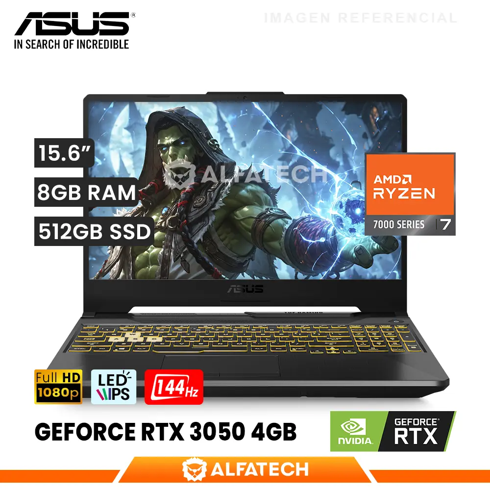 LAPTOP ASUS TUF GAMING A15 FA506NCG-HN187W AMD RYZEN 7 7445HS 8GB RAM 512GB SSD RTX 3050 4GB 15.6 FHD IPS 144HZ (FA506NCG-HN187W)