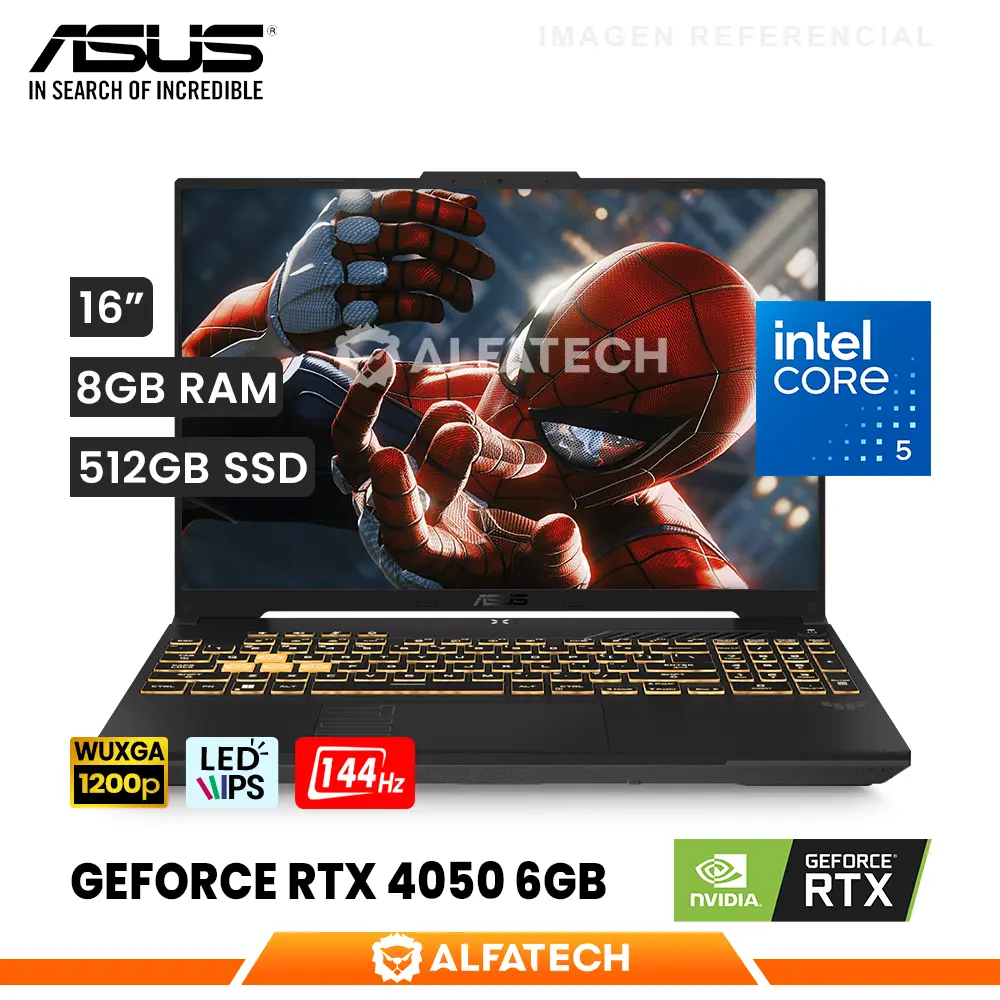 LAPTOP ASUS TUF GAMING F16 FX607VU-RL037W INTEL CORE I5 210H 8GB RAM 512GB SSD RTX 4050 6GB 16 WUXGA IPS 144HZ (FX607VU-RL037W)