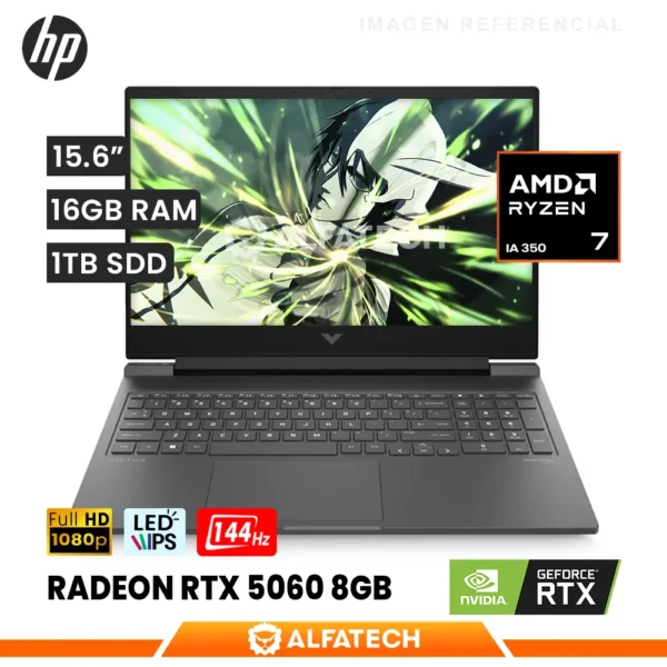 LAPTOP HP VICTUS 15-FB3001NR AMD RYZEN AI 7 350 16GB RAM 1TB SSD RTX 5060 8GB 15.6 FHD IPS 144HZ (15-FB3001NR)