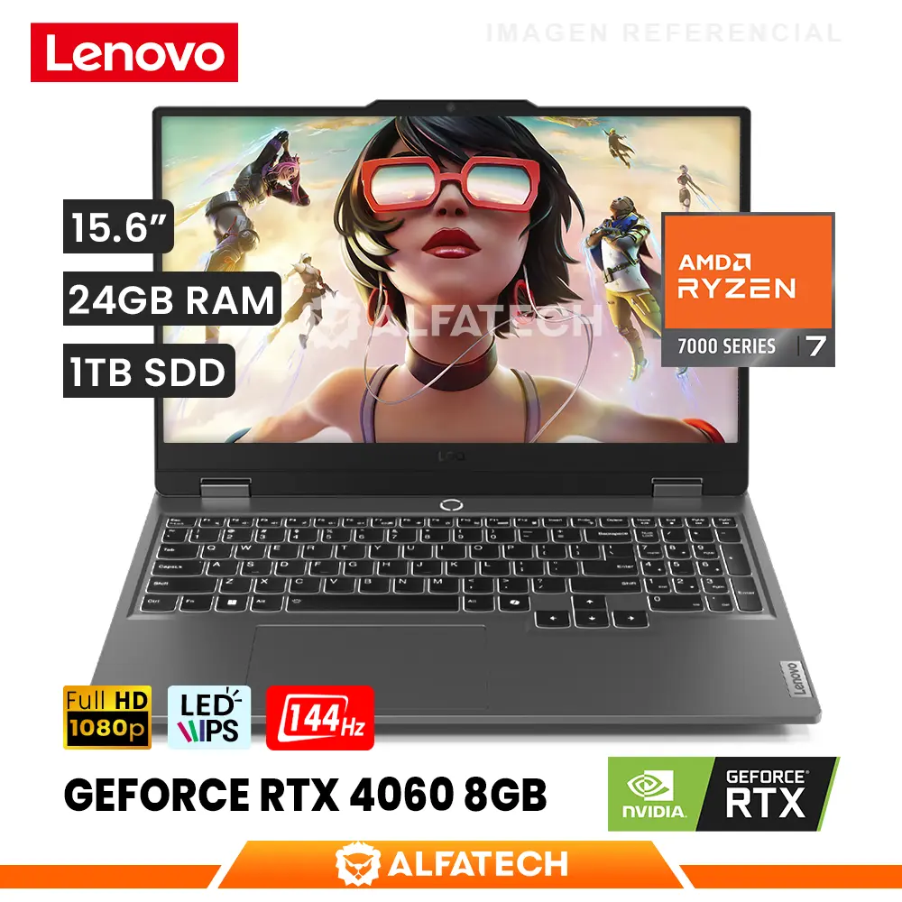 LAPTOP LENOVO LOQ 15ARP9 AMD RYZEN 7 7435HS 24GB RAM 1TB SSD RTX 4060 8GB 15.6 FHD IPS 144HZ (83JC008FLM)